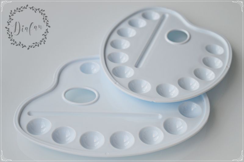 Paleta este un accesoriu ce te poate ajuta atunci cand doresti sa aplici culorile perlate in proiectele tale de caligrafie sau cand vrei sa combini diferite culori.