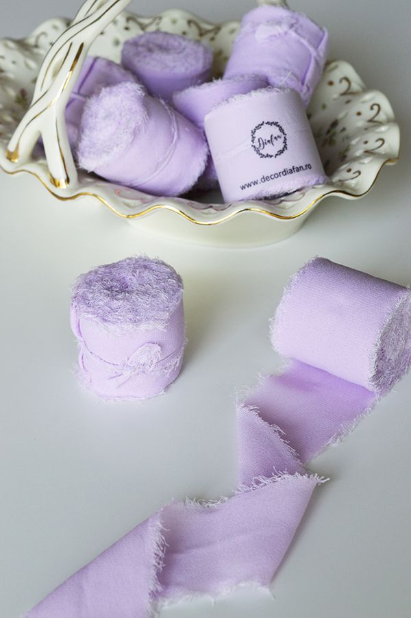 Panglica de matase lila pastel poate fi folosita pentru a lega buchete de flori, adaugand un touch elegant si romantic.