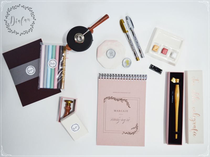Kit caligrafie si sigilii handmade - accesorii complete pentru proiecte creative.