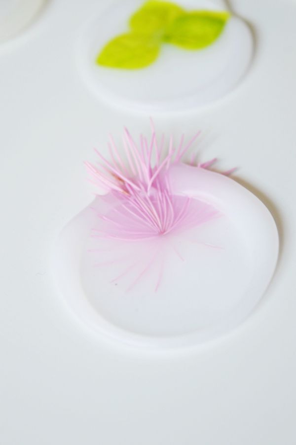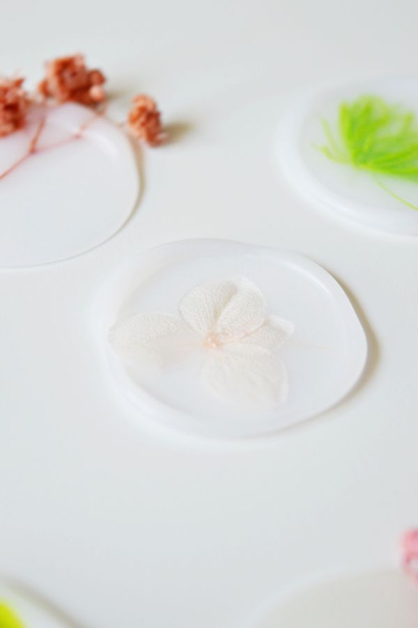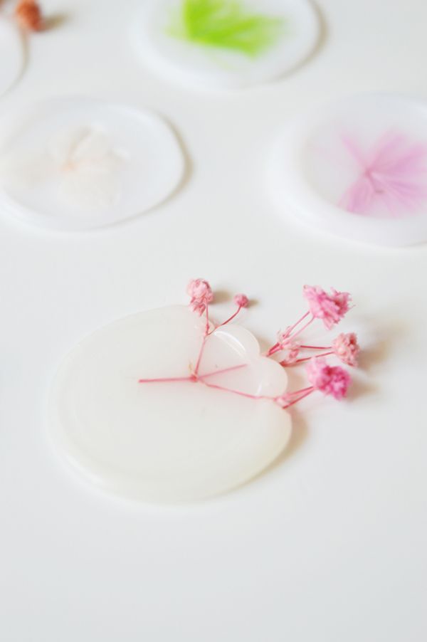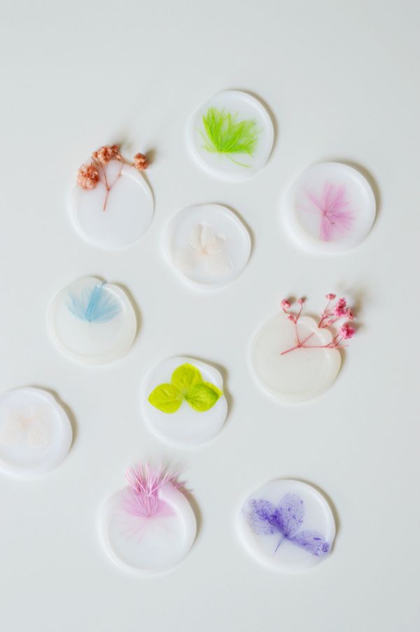 Asezati stampila deasupra florilor si apoi turnati cu atentie ceara topita peste ele.