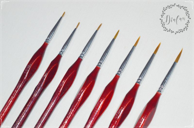 Pensulele au manerul de lemn vopsit in culoarea natur, au varful din par natural de lup, sunt subtiri si sunt folosite pentru detaliile fine ale unei picturi sau in caligrafie. Sunt disponibile in diverse dimensiuni, din punct de vedere al lungimii varfului: