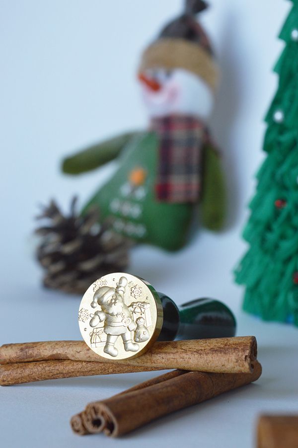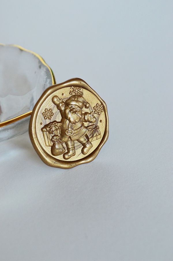 Realizata prin gravare mecanica, stampila sigiliu ceara A venit mos Craciun este confectionata din alama, iar manerul este detasabil.