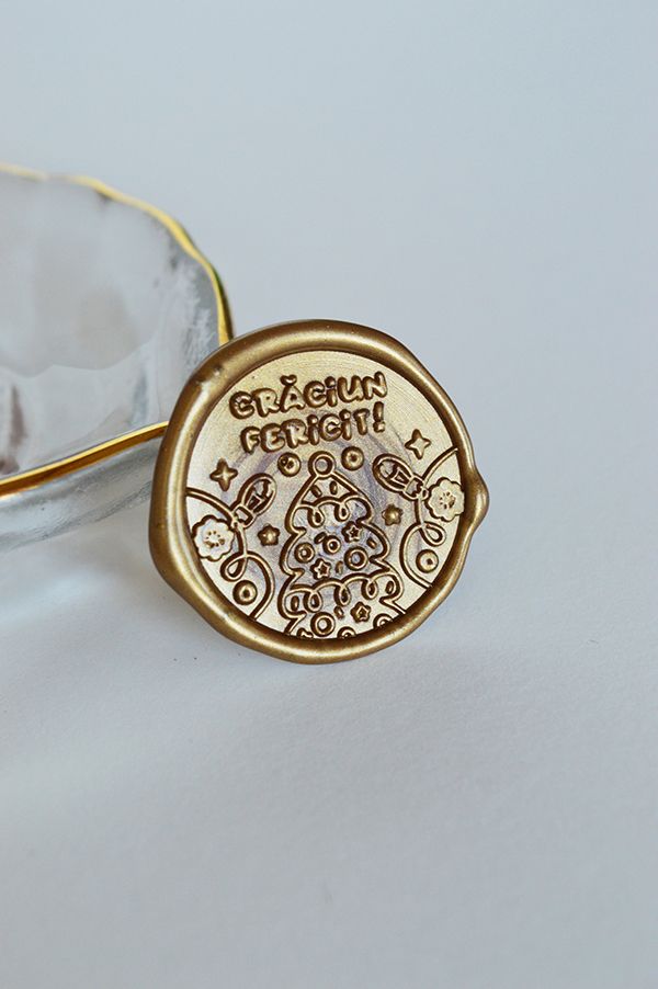 Realizata prin gravare mecanica, stampila sigiliu ceara Craciun Fericit 2 este confectionata din alama, iar manerul este detasabil.