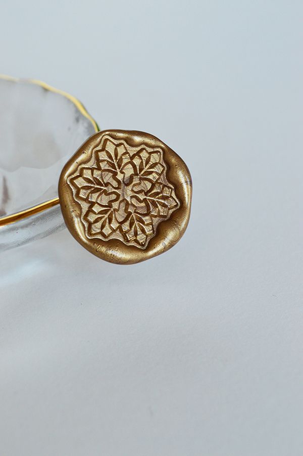 Realizata prin gravare mecanica, stampila sigiliu ceara Fulg de nea 3D este confectionata din alama, iar manerul este detasabil.