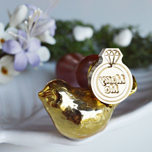Realizata prin gravare mecanica, stampila sigiliu ceara Marry me inel logodna 3D este confectionata din alama, iar manerul este detasabil.