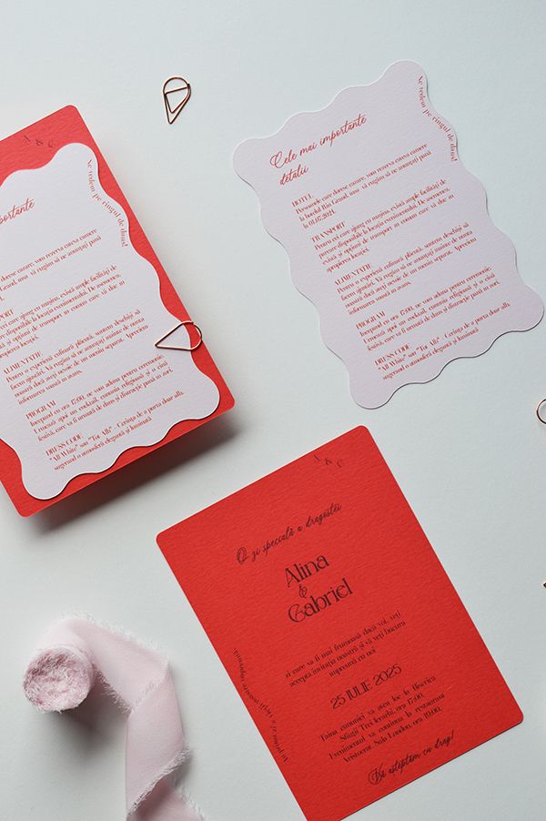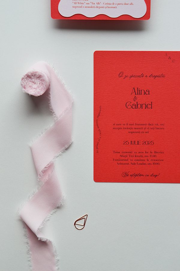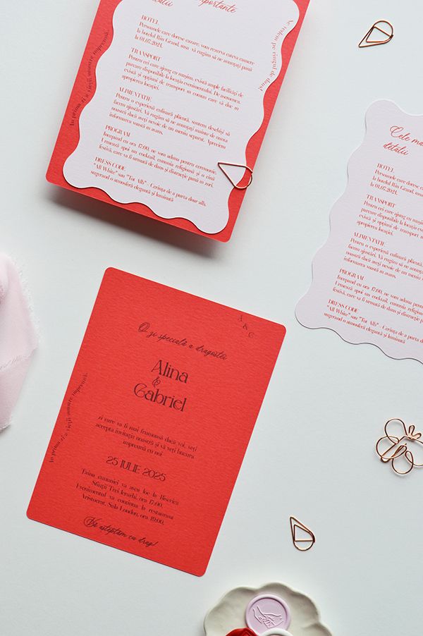 Invitatia pentru eveniment este realizata pe carton de diferite gramaje (220 - 300 g), aceasta ofera o senzatie premium la atingere si durabilitate.