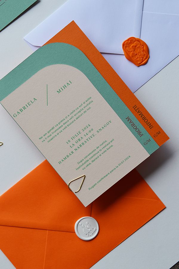 Disponibila in nuante de crem, verde si portocaliu, fiecare set va fi prins cu o agrafa minimalista, optionala, in cazul in care poate doriti un plic in loc de agrafa.
