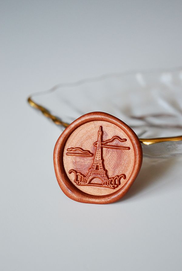 Realizata prin gravare mecanica, stampila sigiliu ceara Turn Eiffel Paris este confectionata din alama, iar manerul este detasabil.